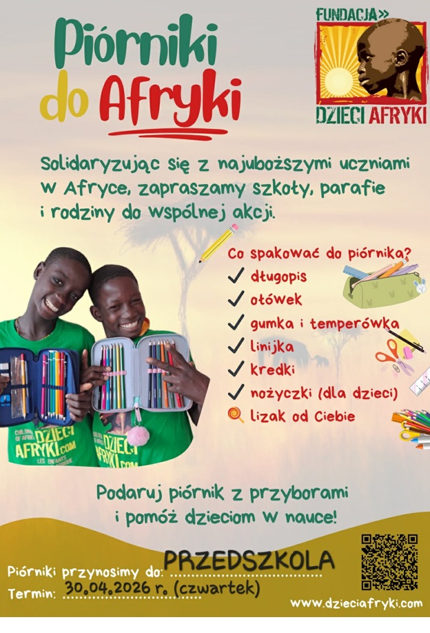 Do 30.04.2026 r. – akcja charytatywna „Piórnik do Afryki”